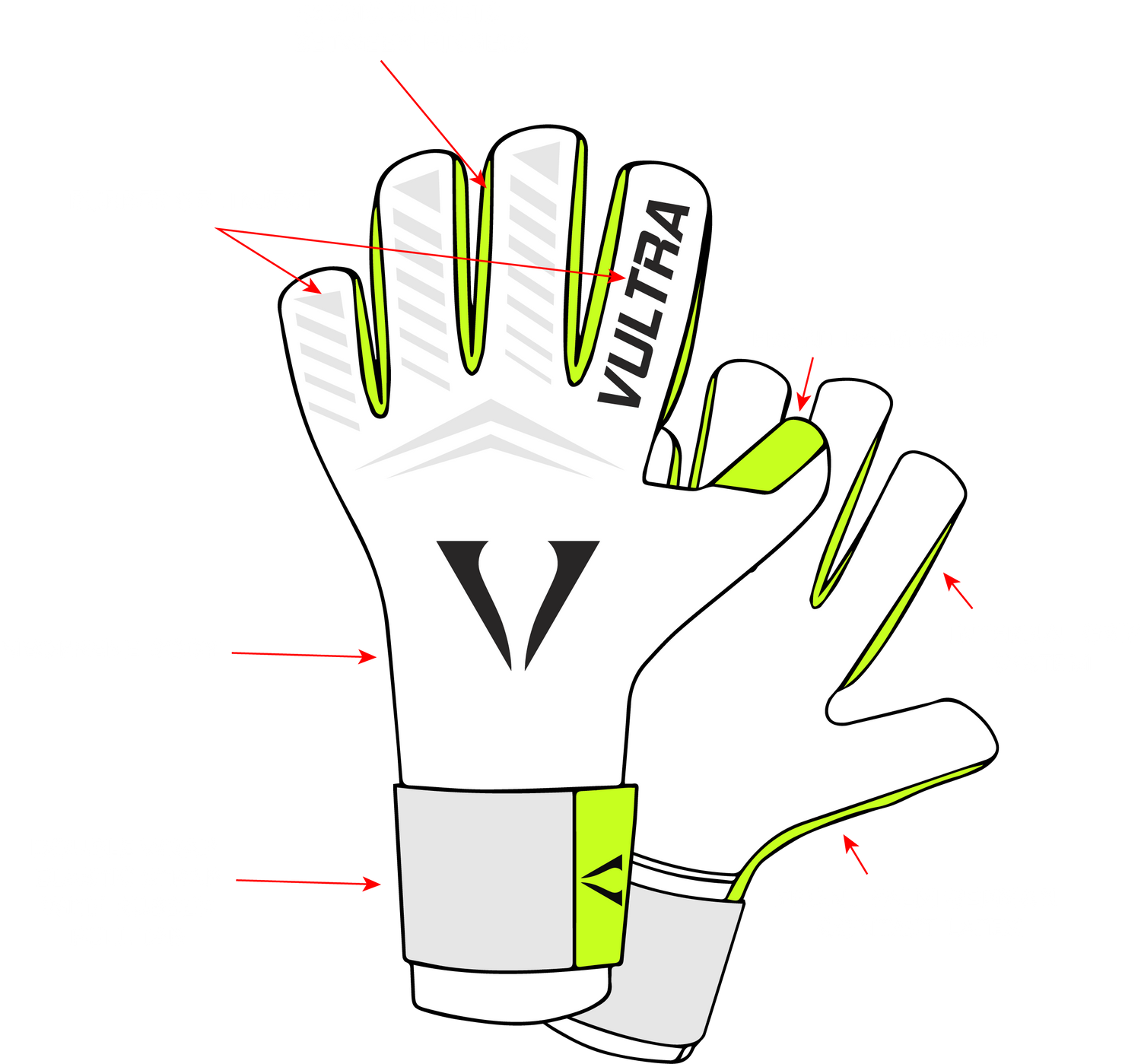 Our rubber punch zones are located on each finger and on the backhand for punching the ball away in those awkward moments.